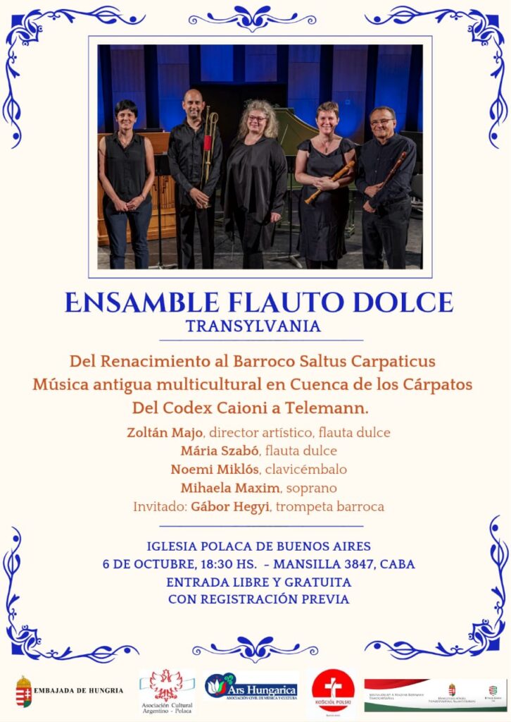 Desde la Asociación Cultural Argentino – Polaca junto a Ars Hungarica tenemos el agrado de invitarlos al concierto del Ensamble Flauto Dolce, un conjunto que llega por primera vez a Argentina desde Transilvania para deleitarnos con obras que van desde el Renacimiento al Barroco. 📅Viernes 6 de octubre, 18:30 hs. 📌 Mansilla 3847, CABA 📍Iglesia […]