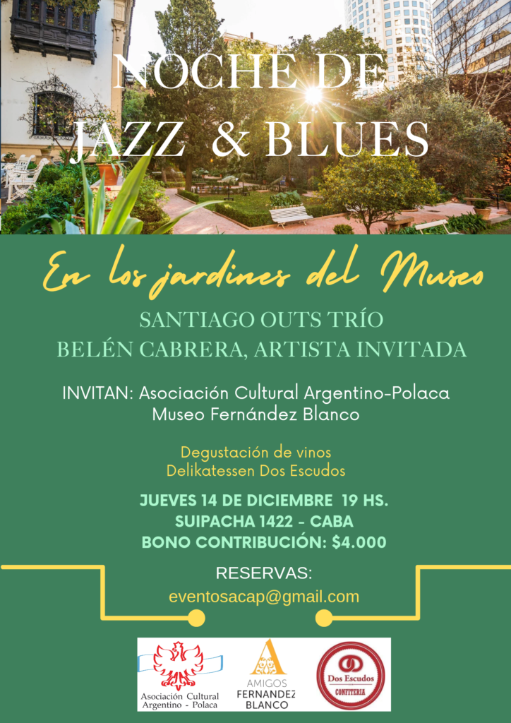 La Asociación Cultural Argentino Polaca tiene el agrado de invitarlos a despedir la Agenda 2023 con una noche de Jazz & Blues en los maravillosos jardines del Museo de Arte Hispanoamericano Isaac Fernandez Blanco – Sede Palacio Noel. Esta vez nos acompañará Live Jazz Music con la participación especial de Belén Cabrera, una de las […]